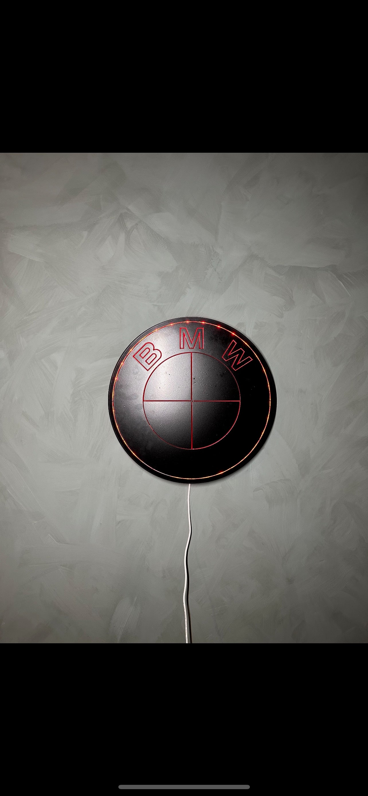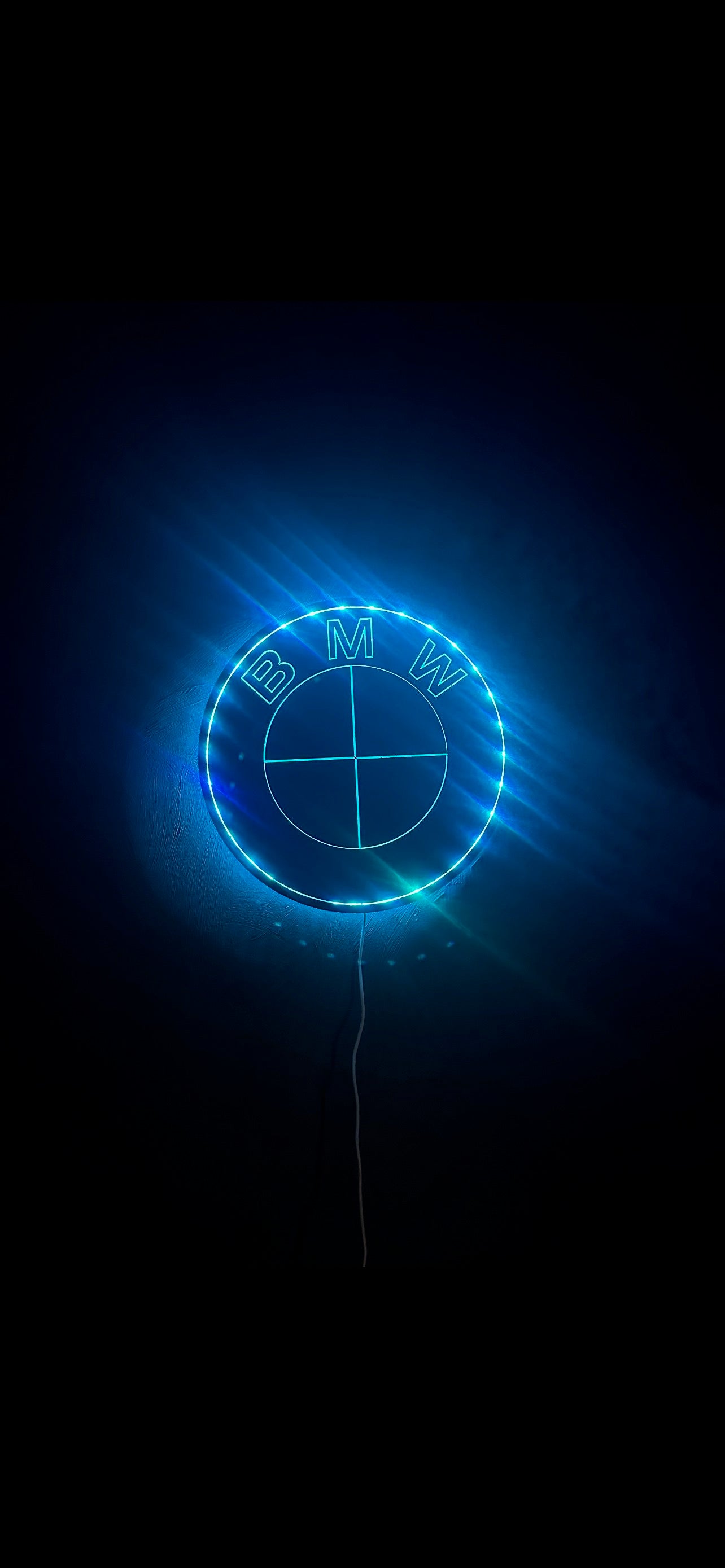 Bmw skylt i 1mm rostfritt stål/pulverlackat stål med Rgb led ip67 klassad