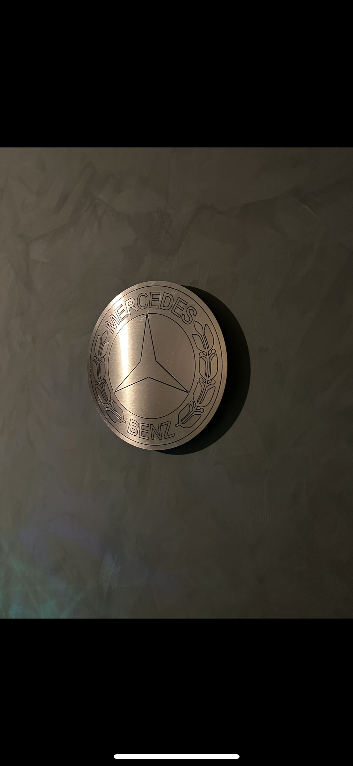 Mercedes skylt i 1mm rostfritt stål/pulverlackat stål med Rgb led ip67 klassad